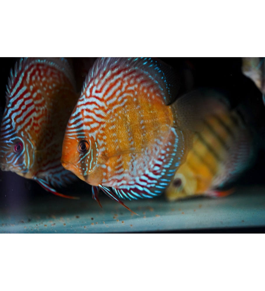 This variety was first found in Rio Trombetas and was a discovery made by the company Santarém Discus in 2018. Wild with different characteristics that we describe with a golden tone and some with a strong bar in the middle that we call Ica. Golden brown base color that will likely give rise to another orange or red color in the future. Golden Royal collected in the last season 2023/2024. About 15 to 16 cm yellow eyes.
